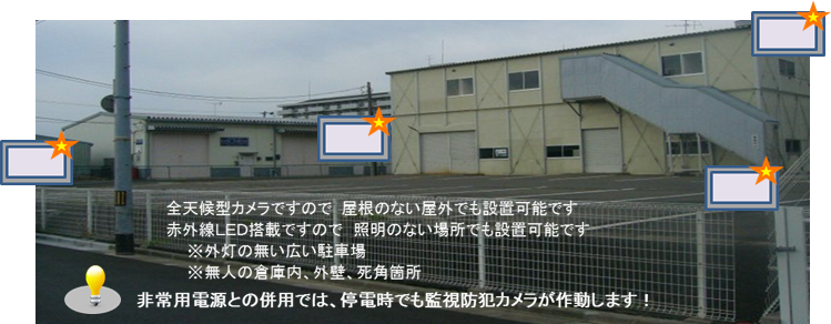 非常用電源 | 防犯カメラ | ネットワーク連動 | 会社概要 | お問い合わせ | ||||||||||||||||||||||||